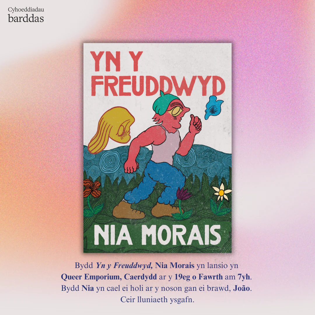 Ymunwch â thîm Barddas yn The Queer Emporium i ddathlu cyhoeddiad Yn y Freuddwyd gan Nia Morais! Bydd Nia Morais yma yn y cnawd, yn cael ei holi am y gyfrol gan ei brawd, João Morais!Medrwch brynu copïau o’r llyfrau ar y noson.Mae’r digwyddiad yma wedi’i chefnogi gan Gyngor Llyfrau Cymru.